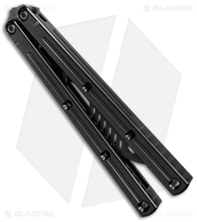- Stainless steel trainer blade with unique cutouts and a black finish.