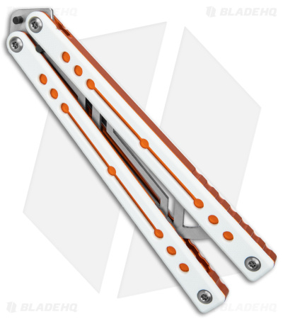 - White G-10 handle scales textured for a sure grip.
