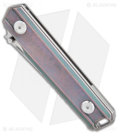 This Blade HQ Exclusive BO2 model has a green and purple anodized titanium handle and a satin finished blade. The Stedemon ZKC-B05 folder offers sturdy titanium construction with a CTS-204P steel blade for dependable everyday carry. It has a titanium liner lock that’s outfitted with a steel reinforced lockbar for blade lock up up you can trust. A titanium pocket clip and backspacer/lanyard loop provide comfortable carrying options.