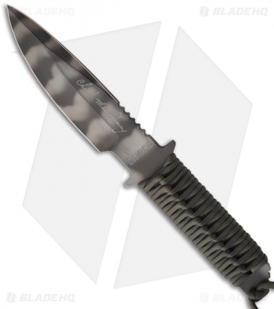 The MT MOD 10 Sniper from Strider features a 1/4″ thick S30V stainless steel blade marked with “Chuck Mawhinney” on the front tang. Full tang construction makes this knife very solid. The handle is wrapped with OD green paracord and features jimping on the blade spine. Includes heavy duty nylon sheath system with felt bonded Kydex liner & accessory pouch (big enough to hold a small folder, tool kit, fire starter, etc.).