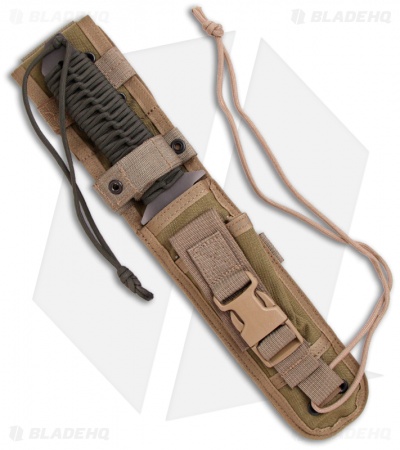 The MTL from Strider features a 1/4″ thick S30V stainless steel spear point blade with a tiger striped finish and spine serrations. Full tang construction makes this knife very solid. The handle is wrapped with OD green paracord. Includes heavy duty nylon sheath system with felt bonded Kydex liner & accessory pouch (big enough to hold a small folder, tool kit, fire starter, etc.).
