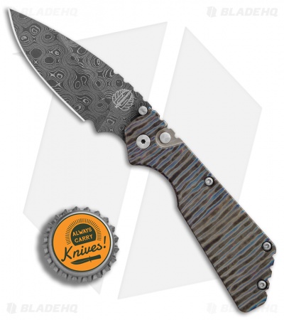 Strider + Pro-Tech Custom PT Automatic Knife Tiger Stripe Ti (2.75″ Damascus)