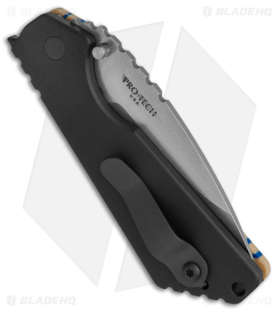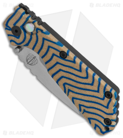 This custom Strider + Pro-Tech SnG automatic knife is from Texas Blade Show 2022! It sports a blue and yellow micarta show scale and a stonewashed blade.