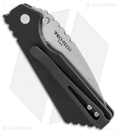 This Strider/Pro-Tech PT auto is equipped with a black handle and a stonewashed blade. Fresh from Shot Show 2017, this Pro-Tech Strider collaboration revitalizes their popular SnG automatic model, with a compact EDC design. The Strider inspired profile remains the same, but the handle and blade have been scaled down to a more pocket friendly size. Stonewashed hardware and a black deep carry pocket-clip round out the impressive EDC design.