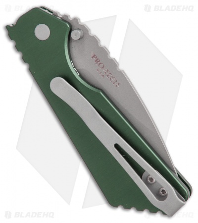 This exclusive Strider/Pro-Tech PT auto is equipped with a dark green handle and a bead blasted blade. Fresh from Shot Show 2017, this Pro-Tech Strider collaboration revitalizes their popular SnG automatic model, with a compact EDC design. The Strider inspired profile remains the same, but the handle and blade have been scaled down to a more pocket friendly size. Bead blasted hardware and a deep carry pocket-clip round out the impressive EDC design.
