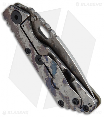 This Blade HQ Holiday exclusive SnG folder from Strider Knives is equipped with a PSF27 steel spear point blade with a rare Double Digicam finish. It features a thumb hole for ambidextrous opening, and deep notched jimping along the spine for superb grip and blade control.