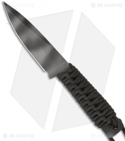 The Strider WP is a slim and lightweight fixed blade knife that is designed for daily carry. It has a tiger stripe finished CPM S30V multi-ground blade with a razor sharp edge. The front tang is marked “STRIDER” and the back has the logo. Full tang construction makes this knife very solid. The handle is olive drab green paracord wrapped. The WP fixed blade includes a Kydex sheath with Tek-Lok.