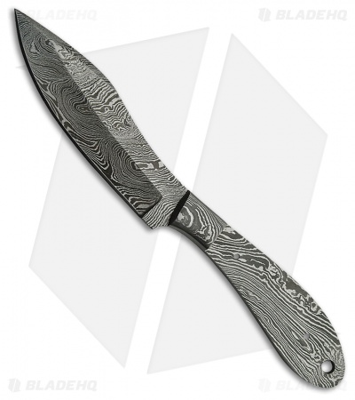 - One piece damascus steel construction with a drop point style