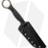 - Black G-10, textured handle with full tang construction featuring a finger hole.