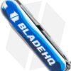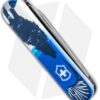 This Blade HQ Blade HQ Exclusive Victorinox Classic SD model has a blue handle with a wolf howling “Knives!” on one side and the Blade HQ logo on the other.