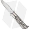 Add a vintage and rare Bali-Song USA knife to your collection with this impressive Jody Samson butterfly knife. It features a stainless steel handle with brown micarta scales and a hand ground Weehawk style blade. These were recently acquired from a collection and are in great condition. They do show some minor signs of wear from being handled. Item includes the original leather sheath but no paperwork. Knife pictured is the actual model for sale.