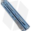 This VMX Butterfly knife sports a blue stonewashed titanium handle and a satin finished tanto blade.