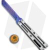 This VMX Butterfly knife sports a Tuxedo titanium handle and a blued Damascus tanto blade.