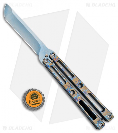VMX Vallotton/Maverick Custom Balisong Knife Vulcan Ti (4.25″ Blued Damascus)