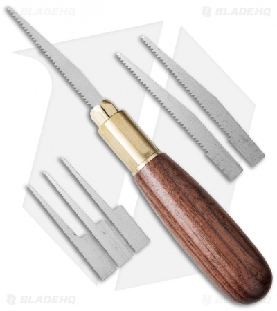 This Pro Pumpkin Carving Set from Warren Cutlery is the ultimate jack o’lantern making tool! It includes a thick walnut handle with a brass lock, 3 narrow detailing saws, 3 standard saws, and 1 lock jaw wrench. The wrench loosens the brass lock so you can quickly switch between the different saw blades. Each blade is made from double tempered high carbon steel for a strong, durable blade edge. Includes a plastic cover for protecting the blade while it is locked in place. Take your pumpkin carving to the next level with the Pro Pumpkin carving set from Warren Cutlery.