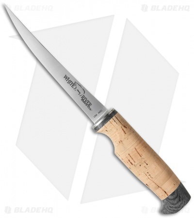 This Traditional 6″ Fillet knife has a cork handle, which gives this knife the buoyancy to float, and it includes the White River “Stay Put” leather sheath.