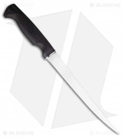 This Traditional 8.5″ Fillet knife has a black canvas Micarta handle for extreme durability and includes the White River “Stay Put” leather sheath.
