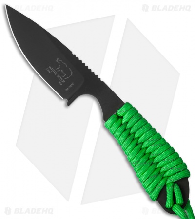 The Backpacker model from White River Knives is a compact fixed blade with a wide range of competencies that span camping, hiking, survival situations, and everyday carry. This model has a reflective green 550 paracord wrapped handle and black ionbond coated blade. It includes a Kydex sheath with belt loop attachment and a paracord tie for neck carry.