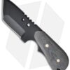 - Black canvas micarta handle with scalloped edges and X’s milled into it.