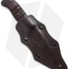 The Bushcraft has a full flat ground blade with a drop point profile that is black Caswell coated. It has tribal pattern engraved Curly Maple scales that are expertly contoured and solid in hand. The tang extends past the scales to end in a breaker pommel. Includes an ambidextrous leather covered Kydex sheath.